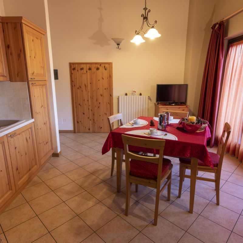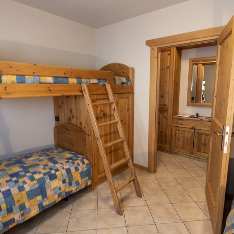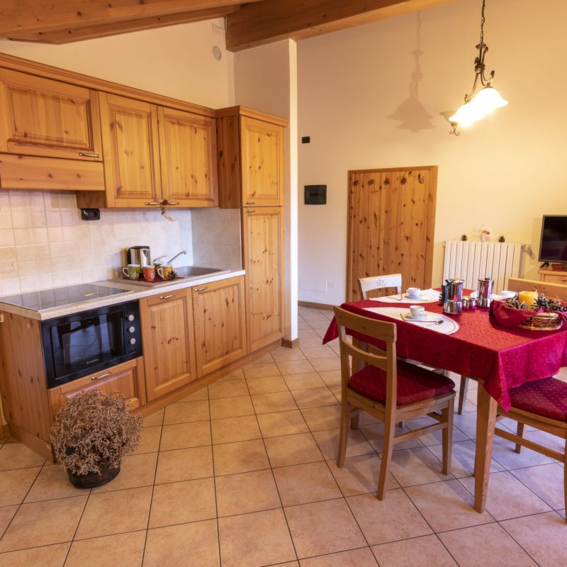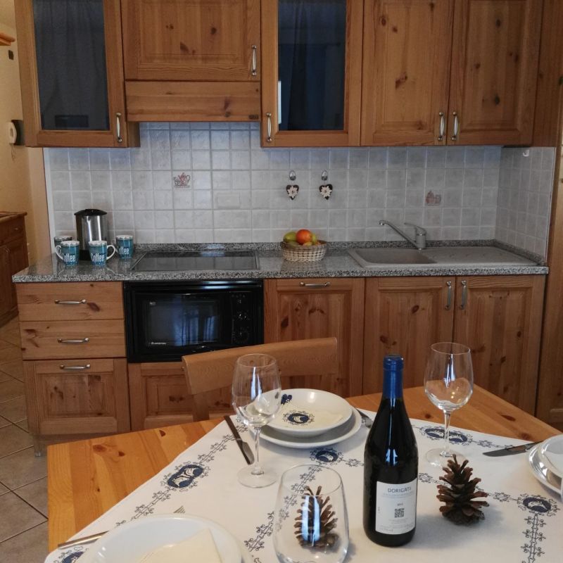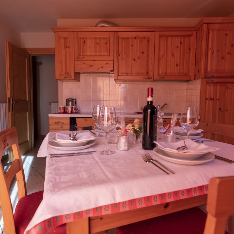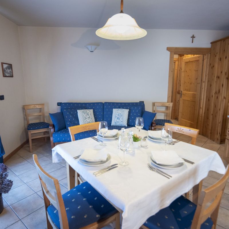 The Camoscio apartment is located on the first floor and mirrors the nearby Stambecco apartment. It consists of a living room / kitchen with sofa bed, two bedrooms (one double and the other with two single beds), a bathroom with shower and three balconies that delimit the apartment on two sides. The south balconies enjoy sunlight from morning to sunset, especially in summer, and offer an excellent opportunity to admire the surrounding mountains and enjoy the pure air in peace and privacy.