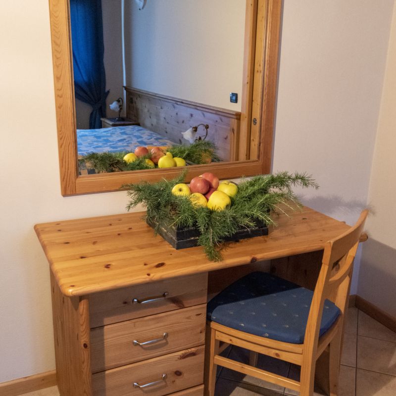 The Camoscio apartment is located on the first floor and mirrors the nearby Stambecco apartment. It consists of a living room / kitchen with sofa bed, two bedrooms (one double and the other with two single beds), a bathroom with shower and three balconies that delimit the apartment on two sides. The south balconies enjoy sunlight from morning to sunset, especially in summer, and offer an excellent opportunity to admire the surrounding mountains and enjoy the pure air in peace and privacy.