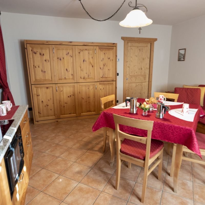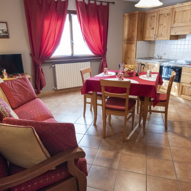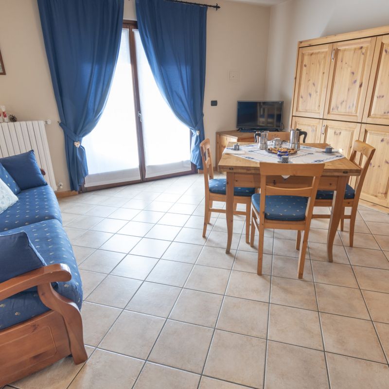 Il monolocale Ortles si trova al primo piano. E' dotato di soggiorno/cucina con divano letto e di un ampio balcone da cui potrete godere una vista panoramica sulle montagne di Oga e sulla Cima Piazzi. Ideale per una vacanza di coppia.